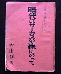 柿落としの演目は音楽劇「時代はサ−カスの象にのって」であった。これがその時の台本である。ポスタ−から入ろうとしたが、きのうまであったのに何故か無い。足の踏み場もない。参った。どこだ。出てきたらアップするとして進めていこう。当時、すでに天井桟敷にはコピ−機があった。芯の硬さB。メ−カ−は三菱ユニ。これが常時寺山さんが使っていた鉛筆である。稽古が始まってから台本が出来上がった部分からその都度コピ−機にかけられ出演者に渡された。あの頃のコピ−機は凄い。間違ってコピ−された面 同紙をあわせるとはがれなかった。はがれてもコピ−された部分が全く読み取れなかった。重ねた台本をめくる時もバリイバリイと効果 音まで付いた。台本の中身が全くきれいなので多分芝居が出来上がった後に配られたのに違いない。演出は萩原朔美氏、音楽はシ−ザ−率いる監獄隊であった。