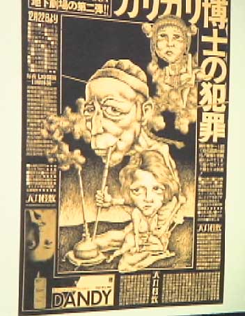 桟敷の扉 劇団の思い出 その21 これがチラシの全容であるが美術の名前が入っていない。 絵の感じからして及川正通氏ような、あるいは榎本了壱氏のような気がするが天井桟敷年表にはこの芝居の美術が高松次郎氏になっている。 3氏のいずれかでもなかった場合、深くお詫び申し上げる。 精吾の部屋index行き ■top page行き