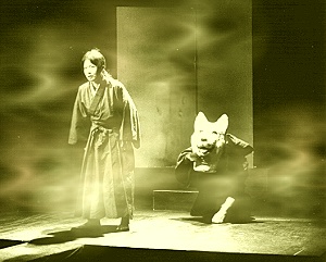 客入れの30分間、黒子が4人、舞台上でじーーーーっとしている。その中央には蝋燭が一本点いている。開演時間のキューが来るとイッキさんがいきなり気合い一発「はっ!」と入って蝋燭の火を手で消す・・・といったもの。